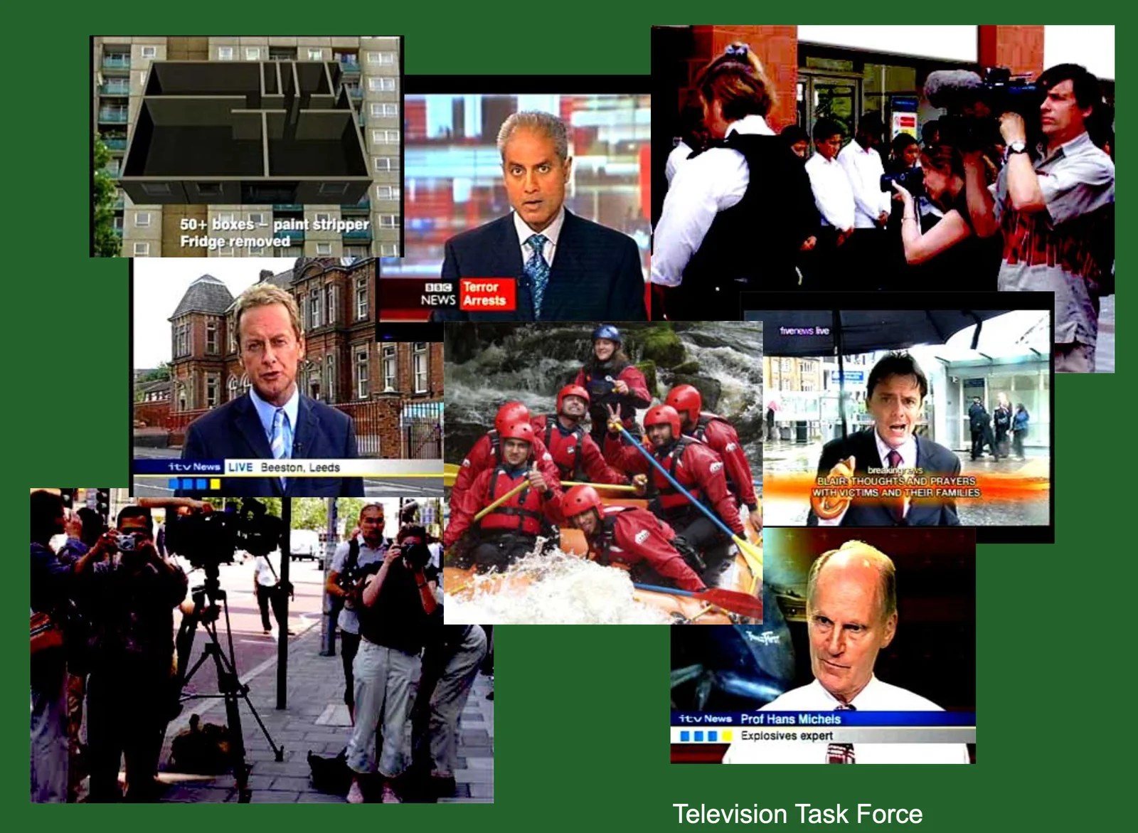 ‘News Making Processes’ was an analysis of UK terrestrial television coverage of the London bombings from the 7th July – 29th July 2005 conducted by the Television Task Force on behalf of Media Watch.